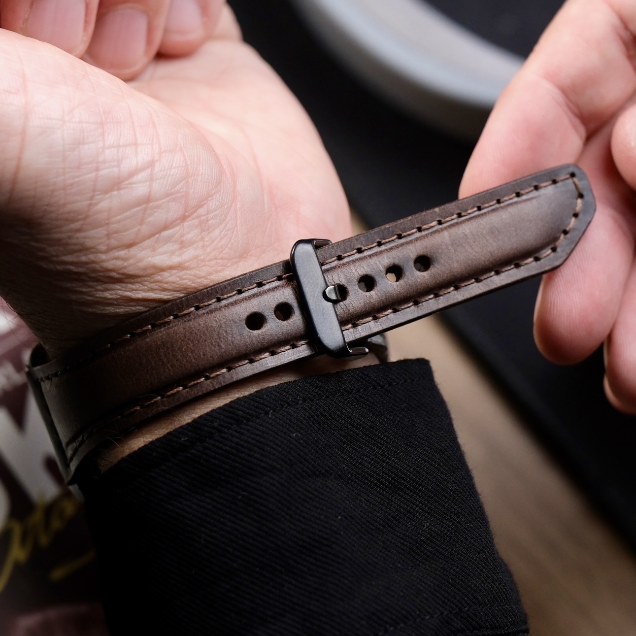 Bu Apple Watch deri kordonu, yüksek kaliteli hakiki vegetal deri kullanılarak, 0.5 mm mumlu iplikle çift iğne yöntemiyle kişiye özel olarak elde üretilmektedir. Kordonunuzu tarzınıza ve saat modelinize göre kişiselleştirme imkânı sunuyoruz. Apple Watch’unuzun modeline ve toka renginize uygun seçenekler sunarak saatinize mükemmel bir uyum sağlıyoruz.