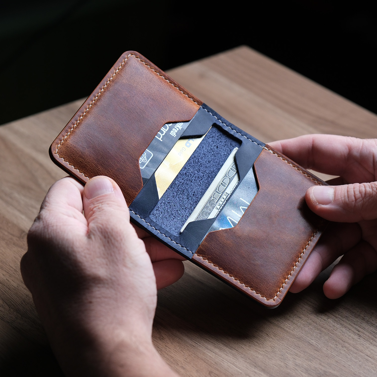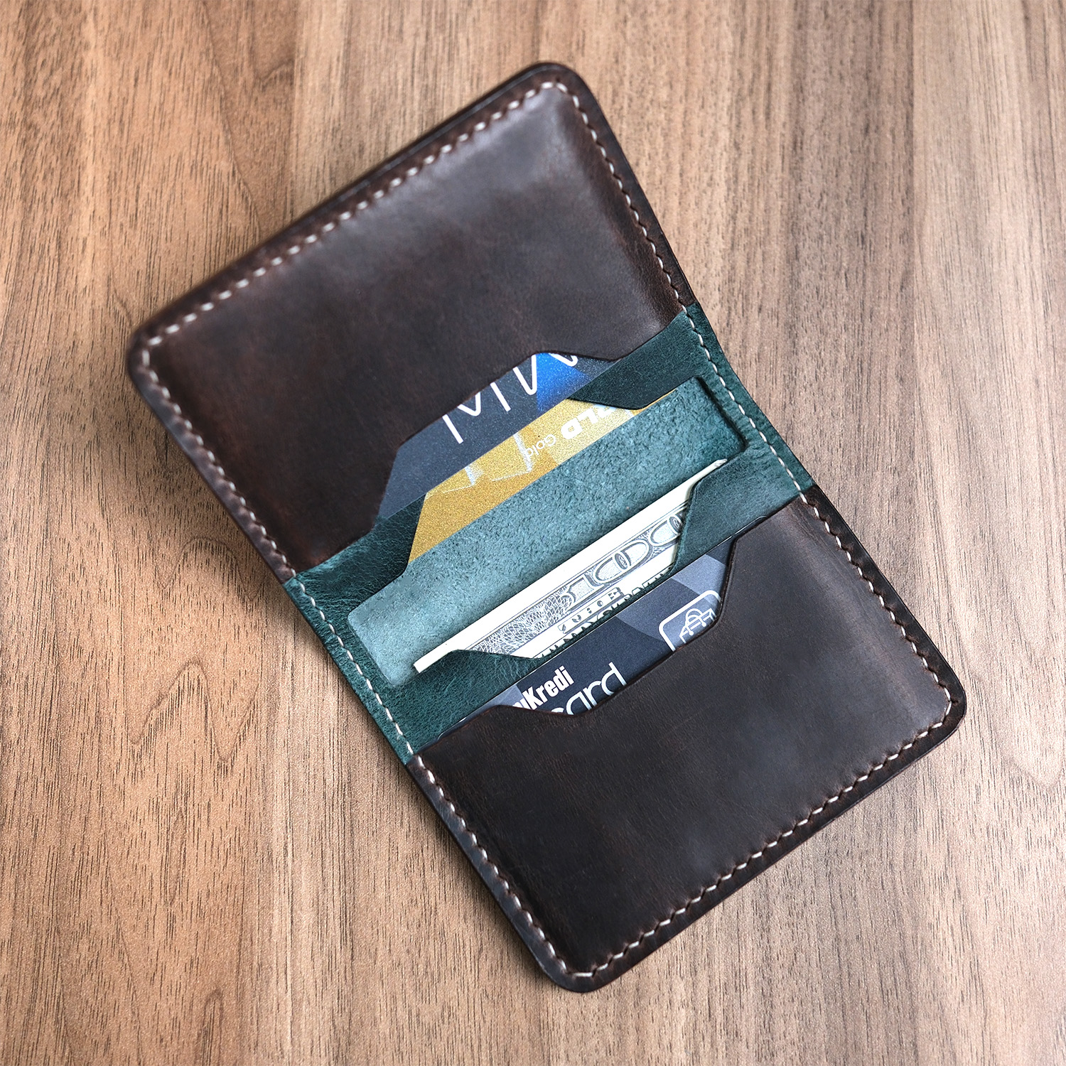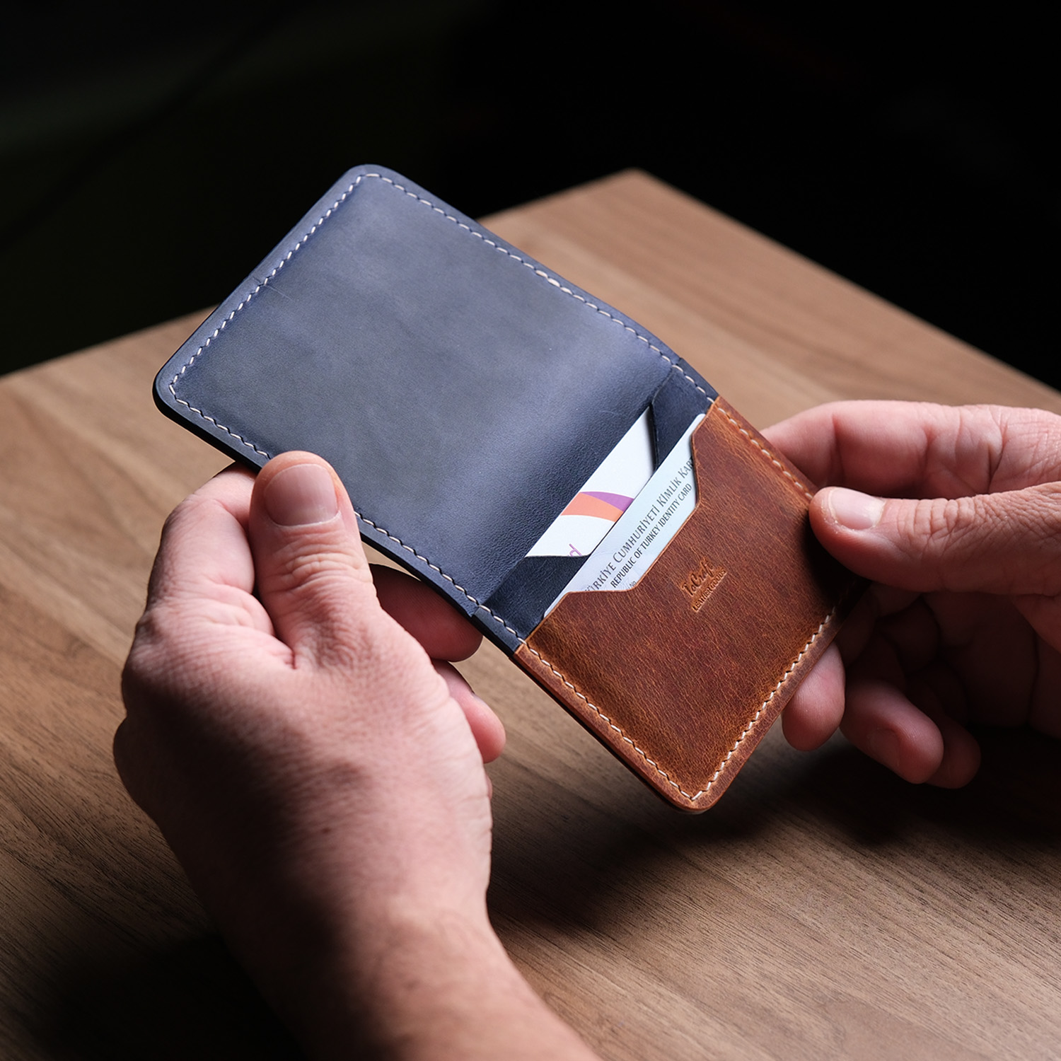 El Yapımı ve Premium Deri: Her bir cüzdan, uzman zanaatkarlar tarafından el işçiliği ile üretilmiştir. Premium, dayanıklı ve doğal dana derisi kullanılmıştır.